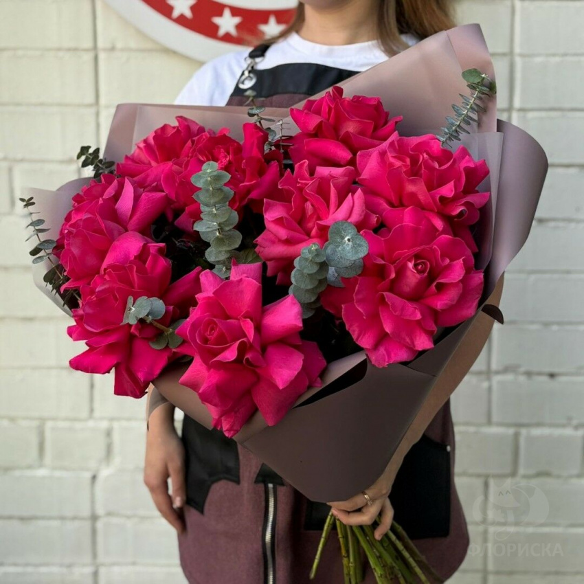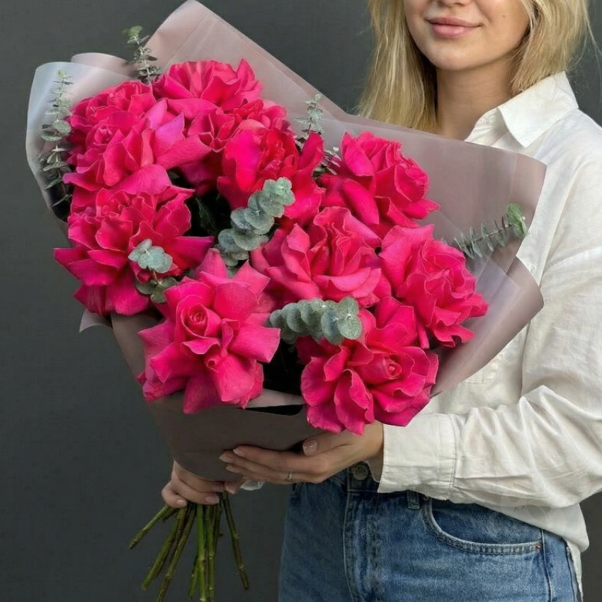 Нам собрали прекрасный букет из красных роз.