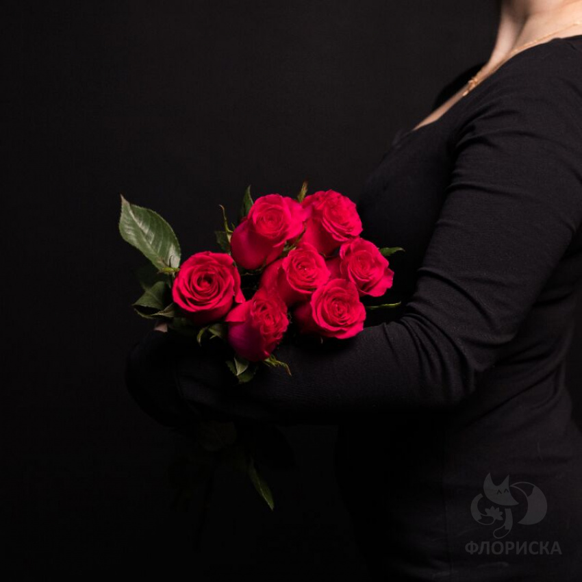 Нам собрали прекрасный букет из красных роз.